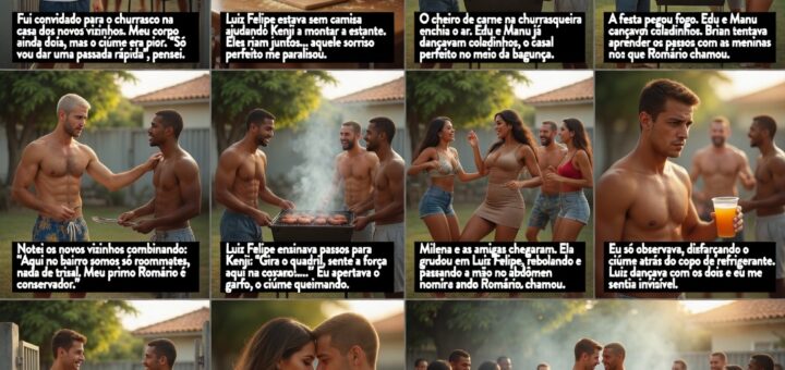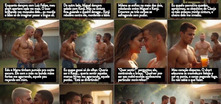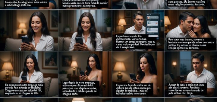 Aqui vai o conto erótico completo baseado na sua descrição original: traição com um negão angolano, gozo interno, e depois uma suruba insana com 3 amigos dele, cheia de dupla penetração vaginal e anal,...